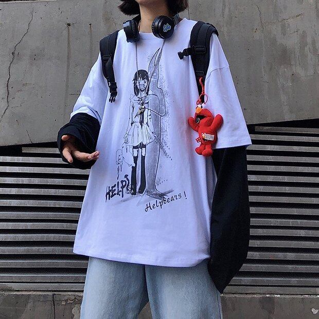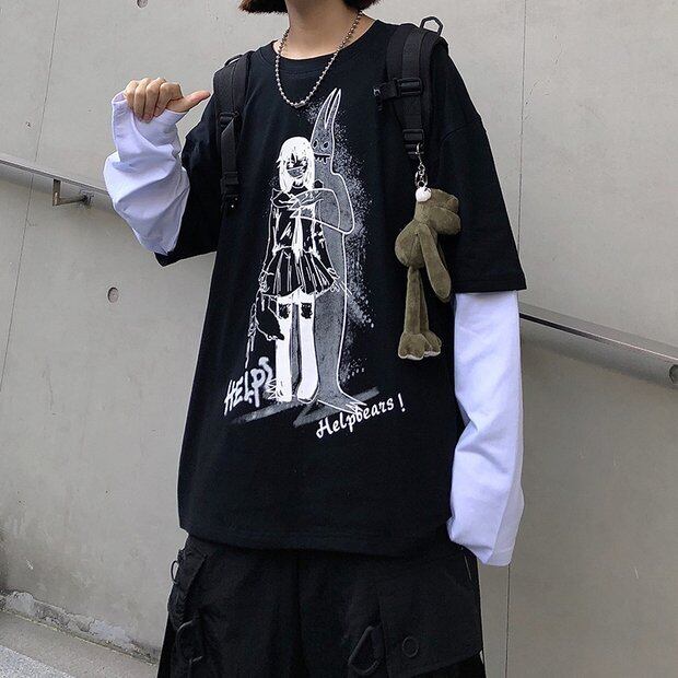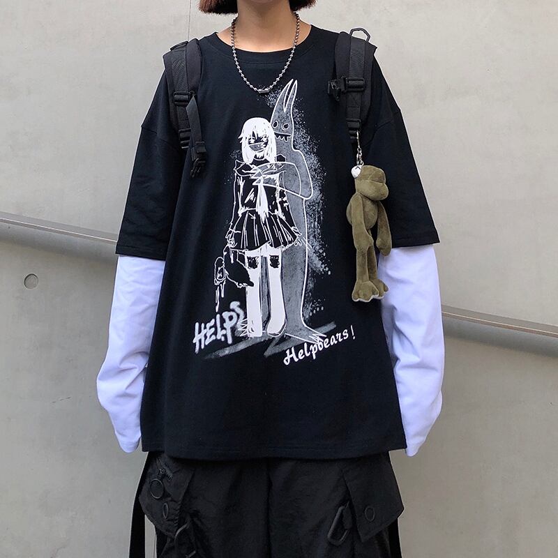 スプリングダークホワイトトップス ルーズTシャツ ロング 春物 Brother_is_Style30190484740