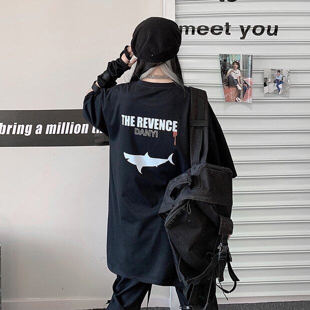 スプリングサマースタイルブラックトップス ルーズTシャツ ストリート かわいい 春物 夏物 Brother_is_Style20485516770
