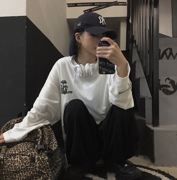 トップス レディーススプリングダークシャツ ルーズラウンドネックTシャツ ロング 春物 Oネック Brother_is_Style15411856630