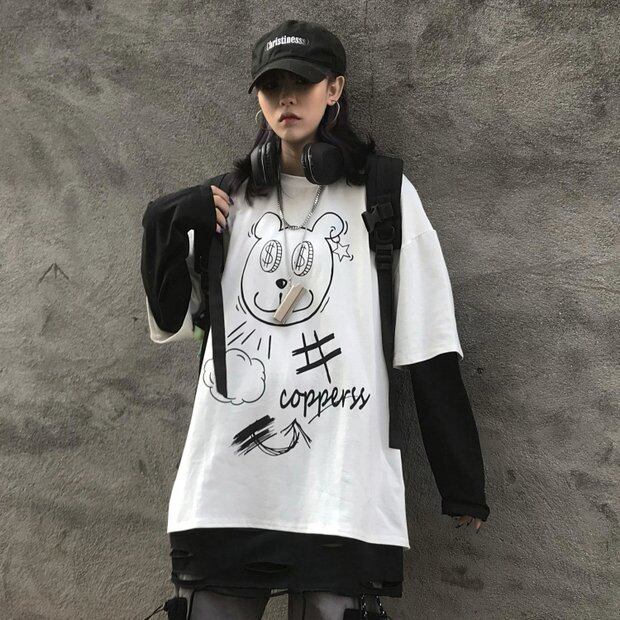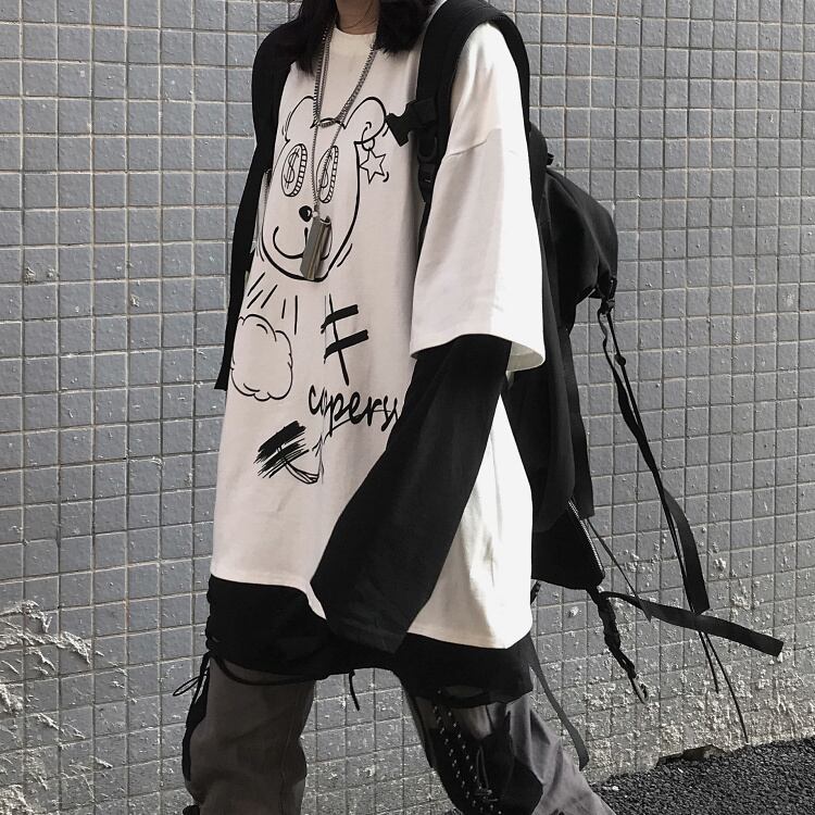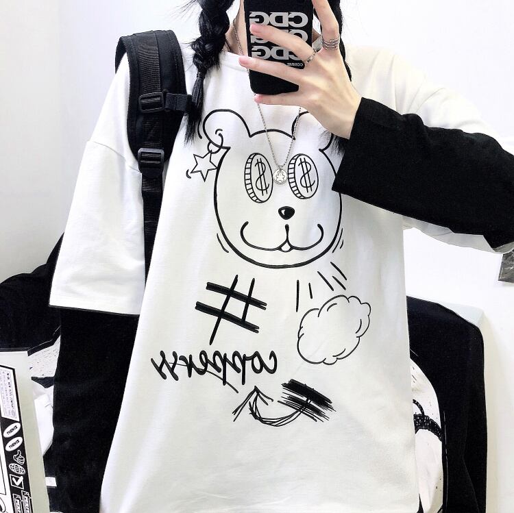 スプリングTシャツ ルーズホワイトトップス ロング 春物 Brother_is_Style39538544830