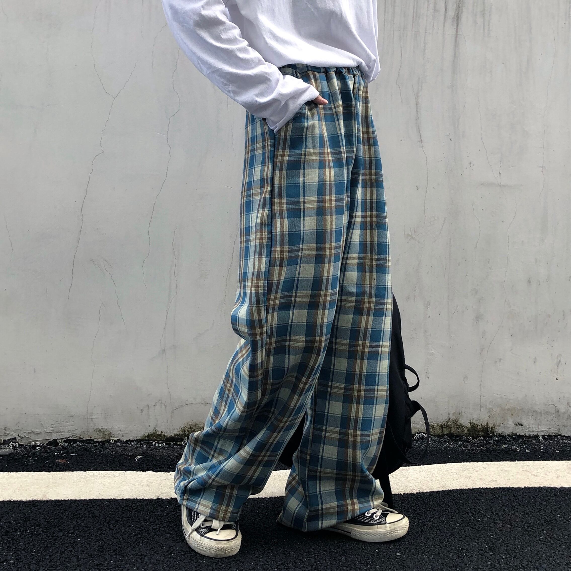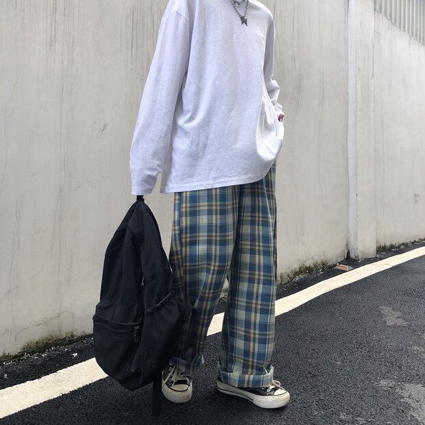 パンツ オータムウィンタースタンダード格子柄ルーズハイウェストカジュアル レトロ 秋物 冬物 Brother_is_Style21743328592