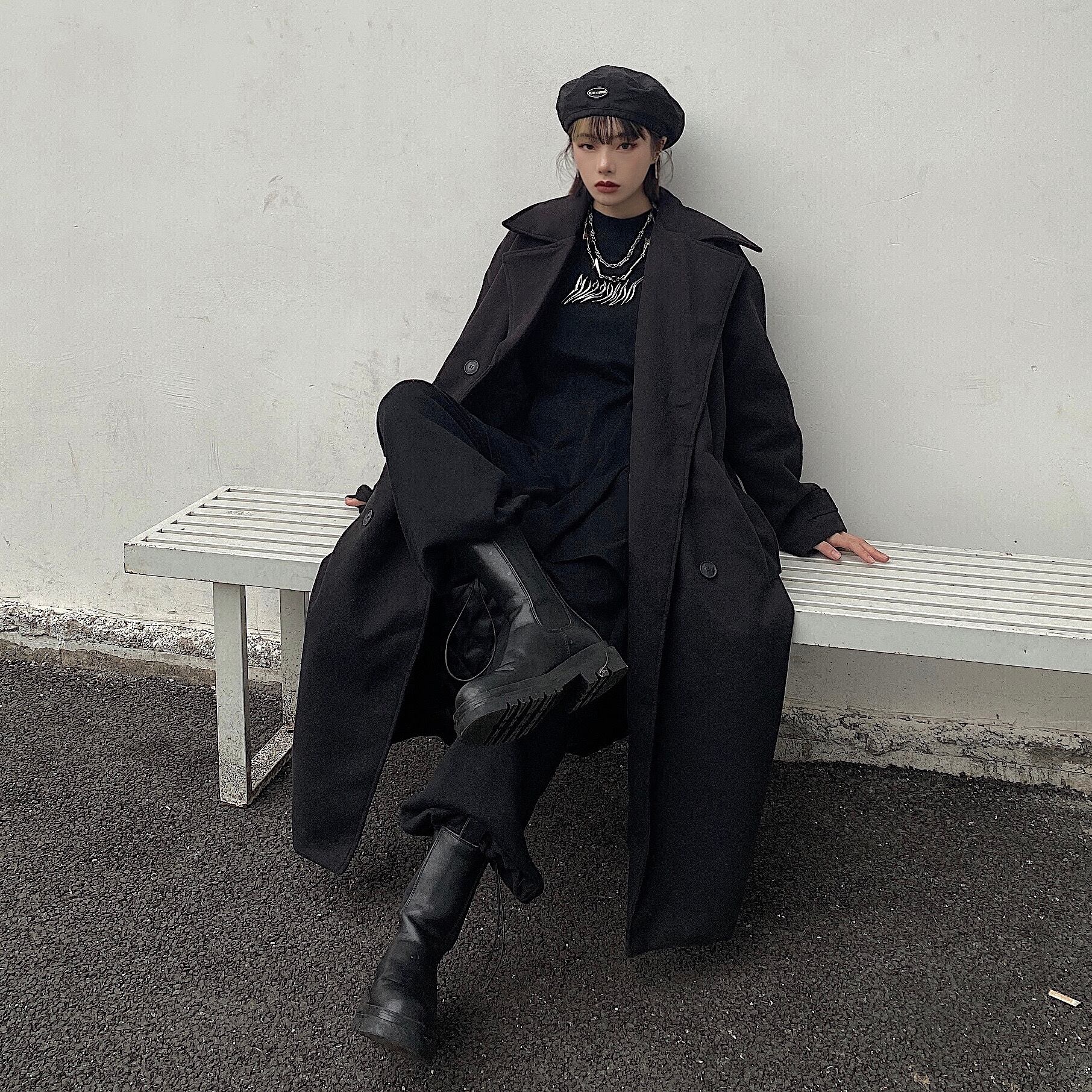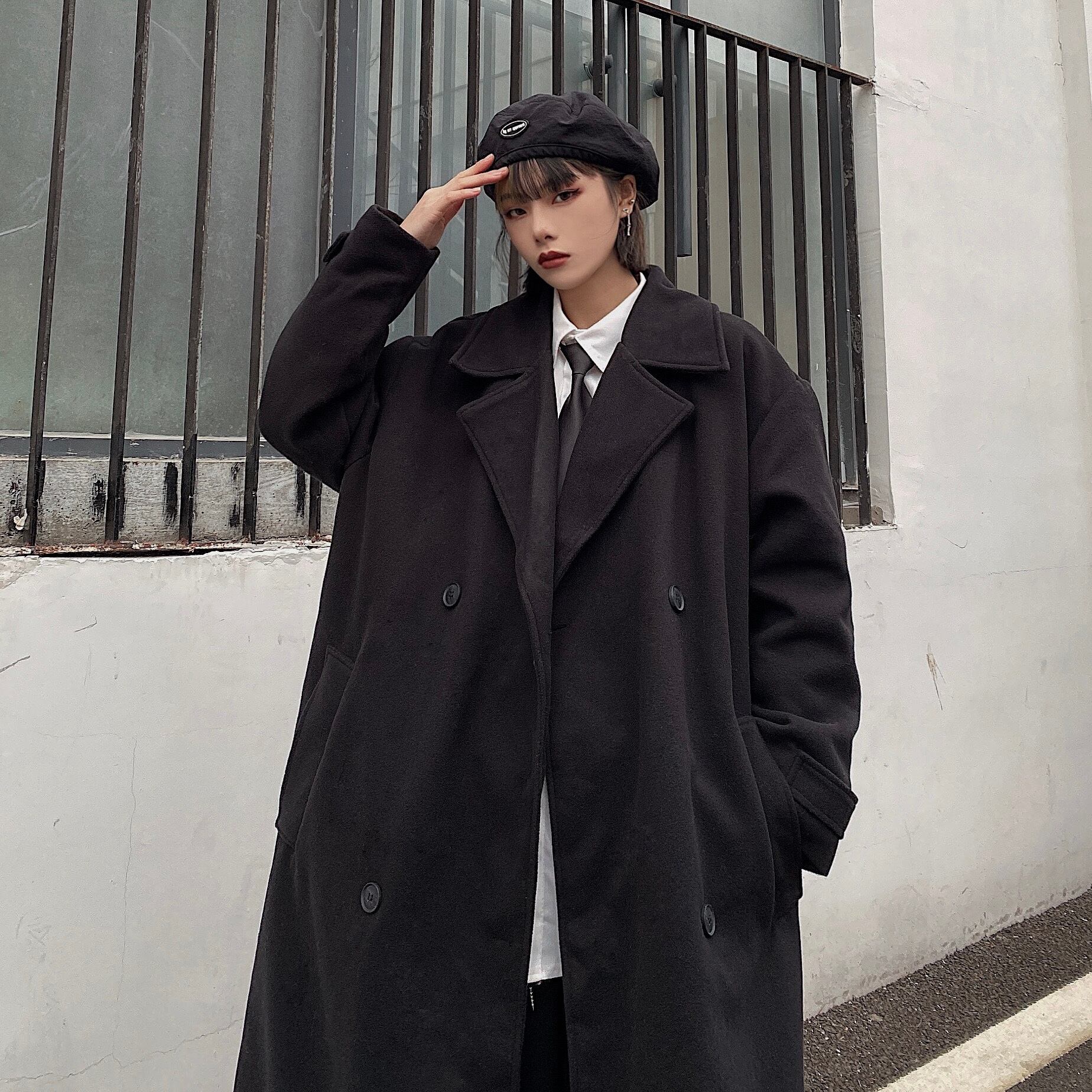 ブラックコート レディーススプリングオータムルーズロングジャケット 春物 秋物 Brother_is_Style76336725704
