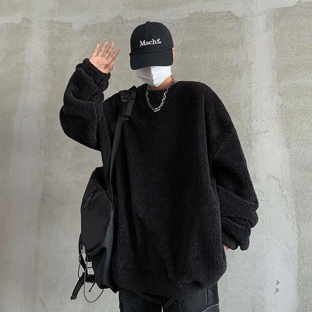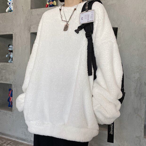 色:黒の豪華なセーター,白いぬいぐるみセーター