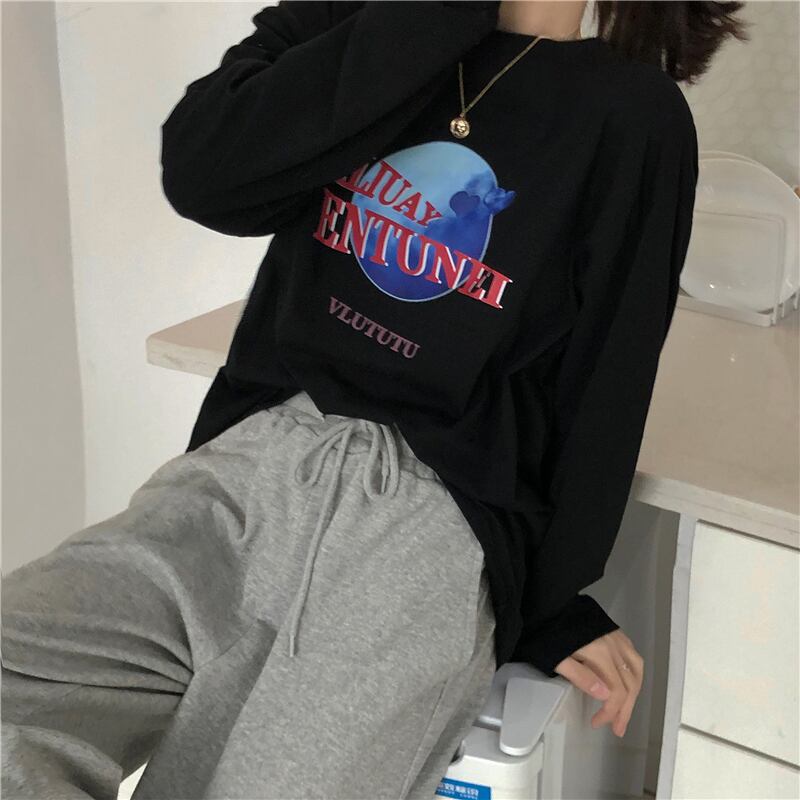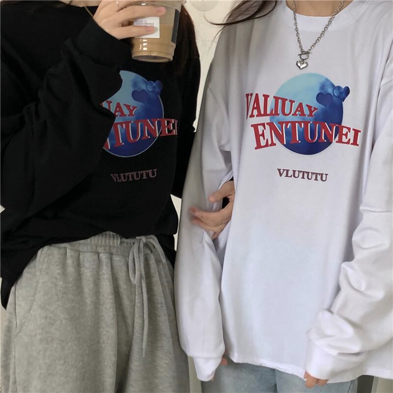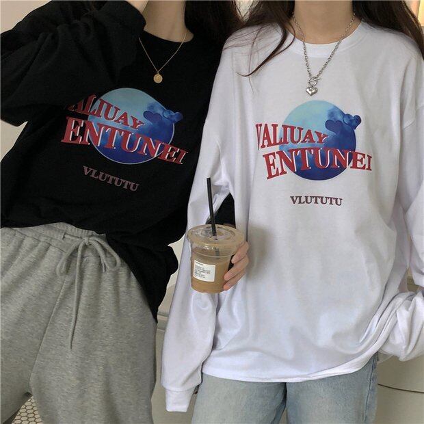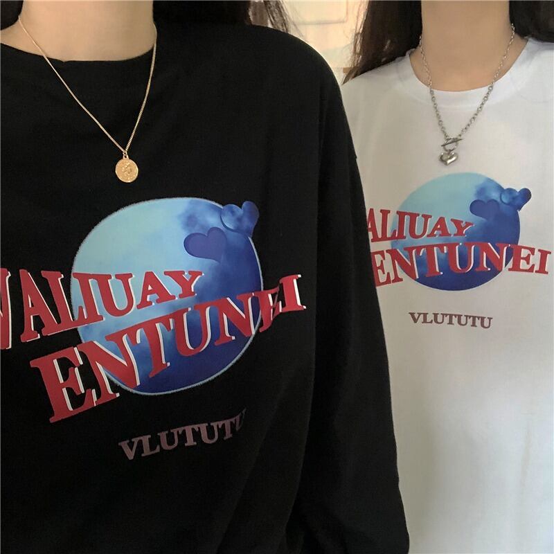スプリングオータムスタイルホワイトシャツ Tシャツ ルーズラウンドネックトップス ロング かわいい 春物 秋物 Oネック Brother_is_Style96788335345