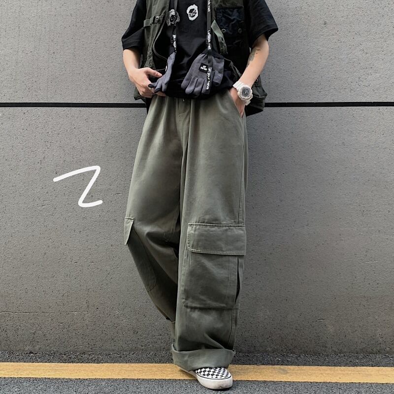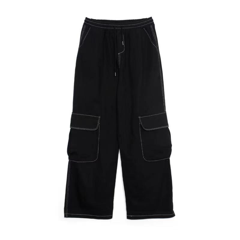 パンツ スプリングスタンダードワイドレッグルーズ薄手ハイウェストウェストブラックカジュアル レトロ 春物 ワイドパンツ Brother_is_Style14593428976