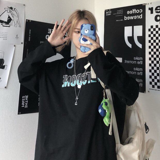 スプリングオータムスタイルTシャツ シャツ ルーズブラックトップス ロング かわいい 春物 秋物 Brother_is_Style60495040590