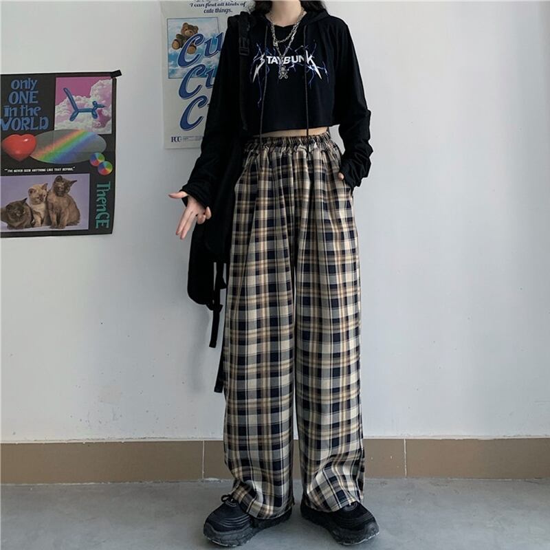 パンツ スプリングスタンダード格子柄ルーズ薄手カジュアル レトロ 春物 Brother_is_Style51342482484