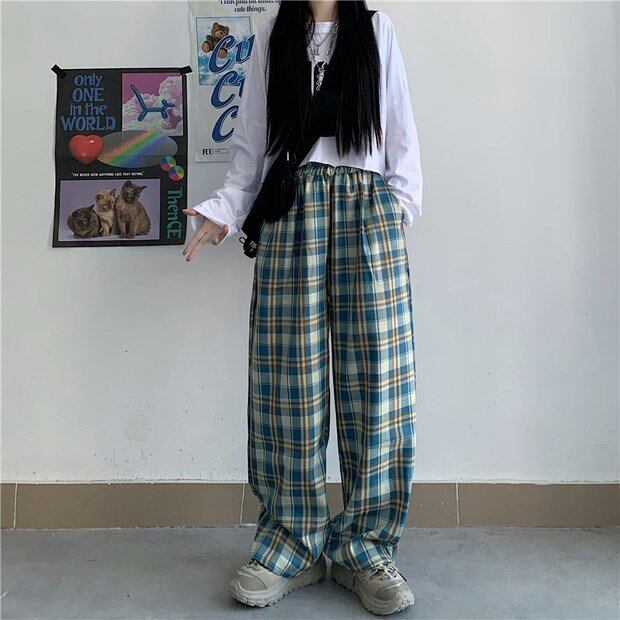 色:ブルーチェックパンツ,黒のチェック柄パンツ
