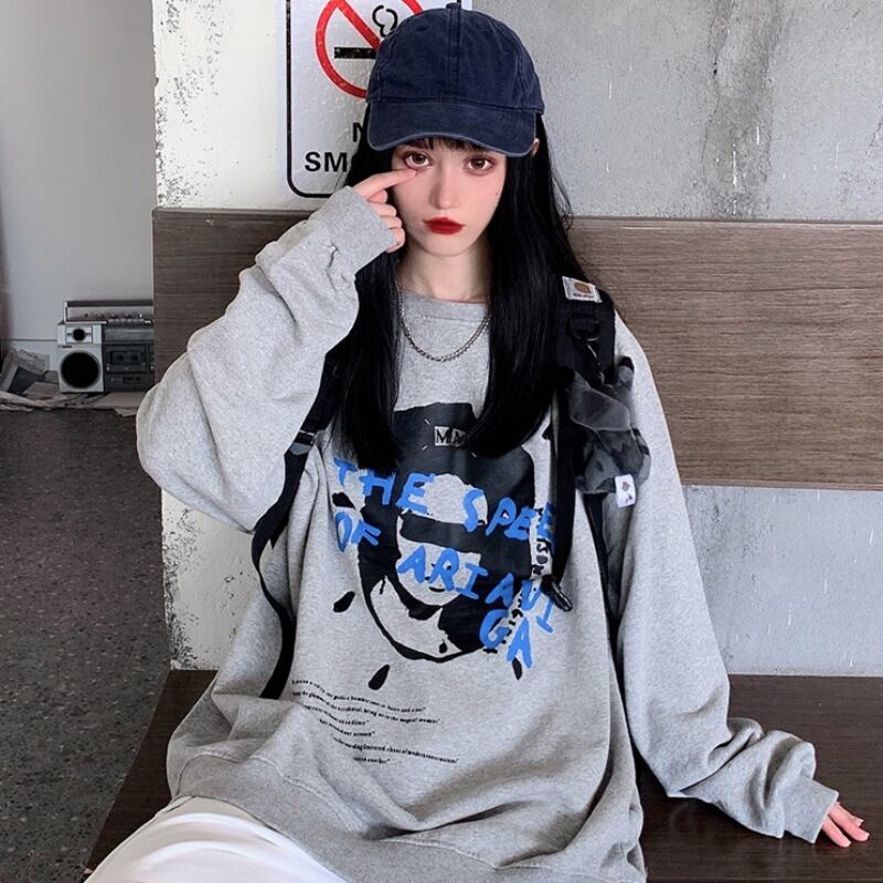 スプリングスタイルトップス ルーズグレーラウンドネックセーター かわいい 春物 Oネック Brother_is_Style77164352897