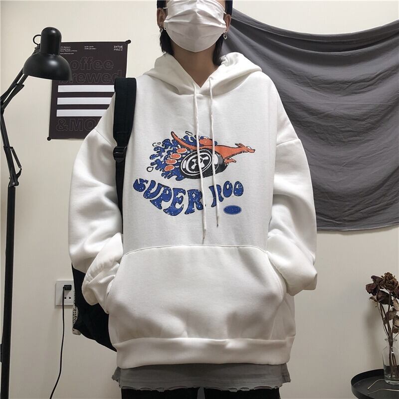 オータムウィンタースタイルルーズフードセーター ベルベットホワイトコート レディース かわいい 秋物 冬物 Brother_is_Style76817867573