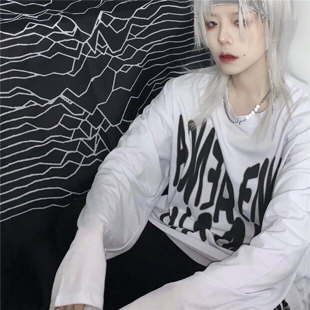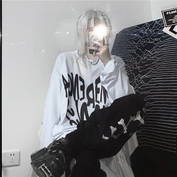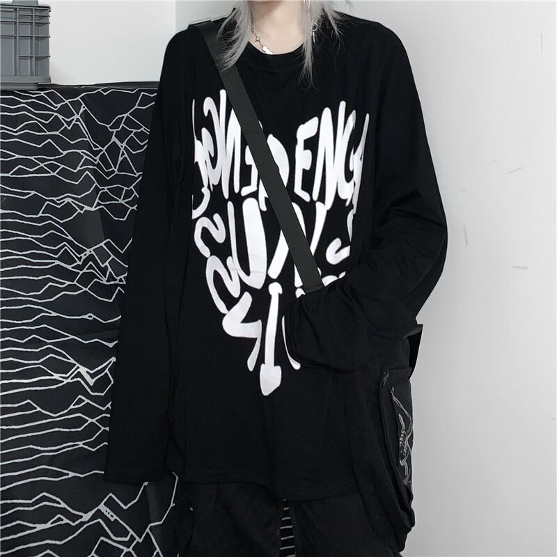 スプリングオータムダークホワイトシャツ トップス ルーズTシャツ ロング 春物 秋物 Brother_is_Style58374537310