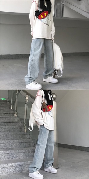パンツ スプリングオータムスタイルハイウェストウェストスリムジーンズ ルーズワイドレッグ かわいい 春物 秋物 ワイドパンツ Brother_is_Style10696354856