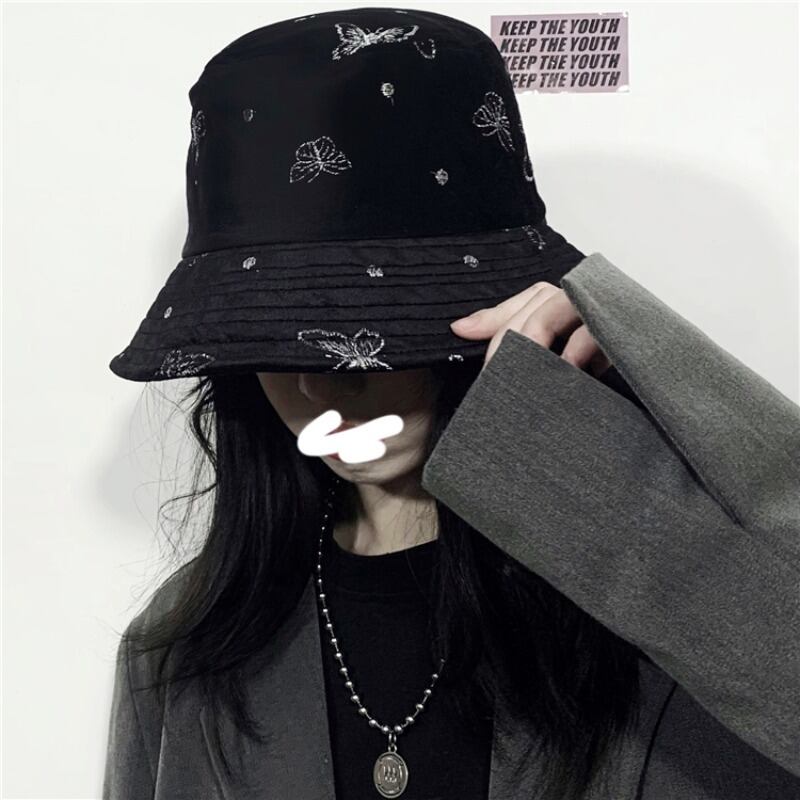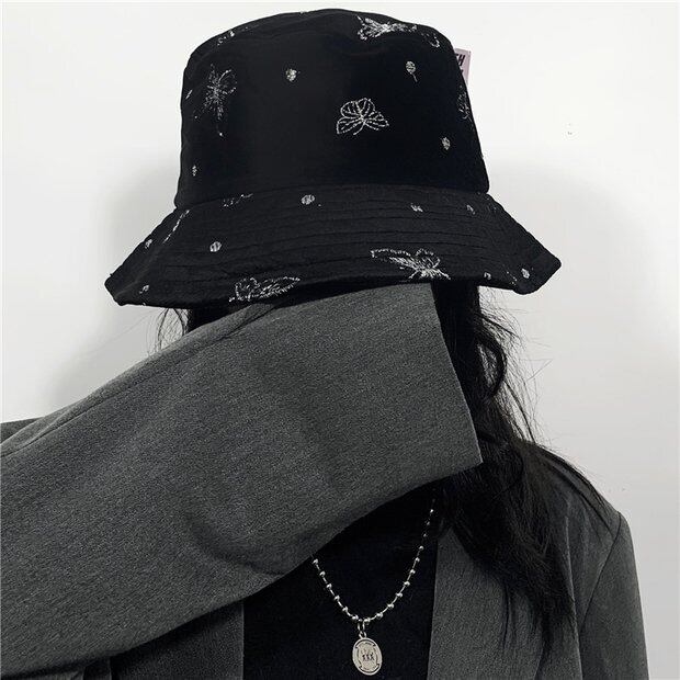 ダークButterflyデザイン 刺繍ベルベットブラックレディース 帽子 Brother_is_Style115000686
