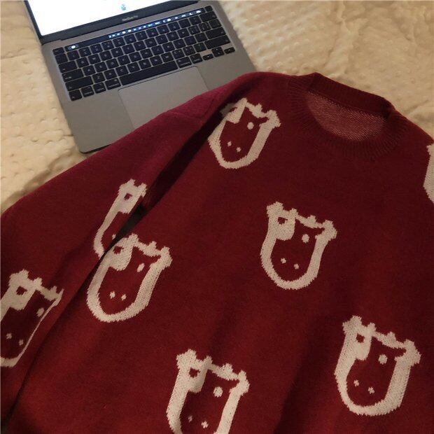 セーター レディースオータムウィンターレッドルーズラウンドネックプルオーバー トップス 秋物 冬物 Oネック Brother_is_Style51410073469