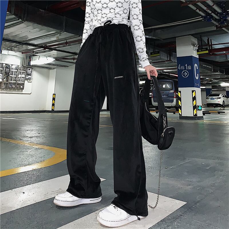 パンツ スプリングオータム薄手ルーズハイウェストウェストワイドレッグカジュアル ストリート 春物 秋物 ワイドパンツ Brother_is_Style67973885053