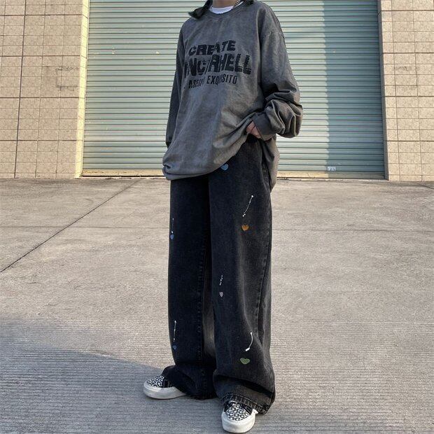 ウェストパンツ スプリングスタンダードルーズジーンズ レトロ 春物 Brother_is_Style5432966738