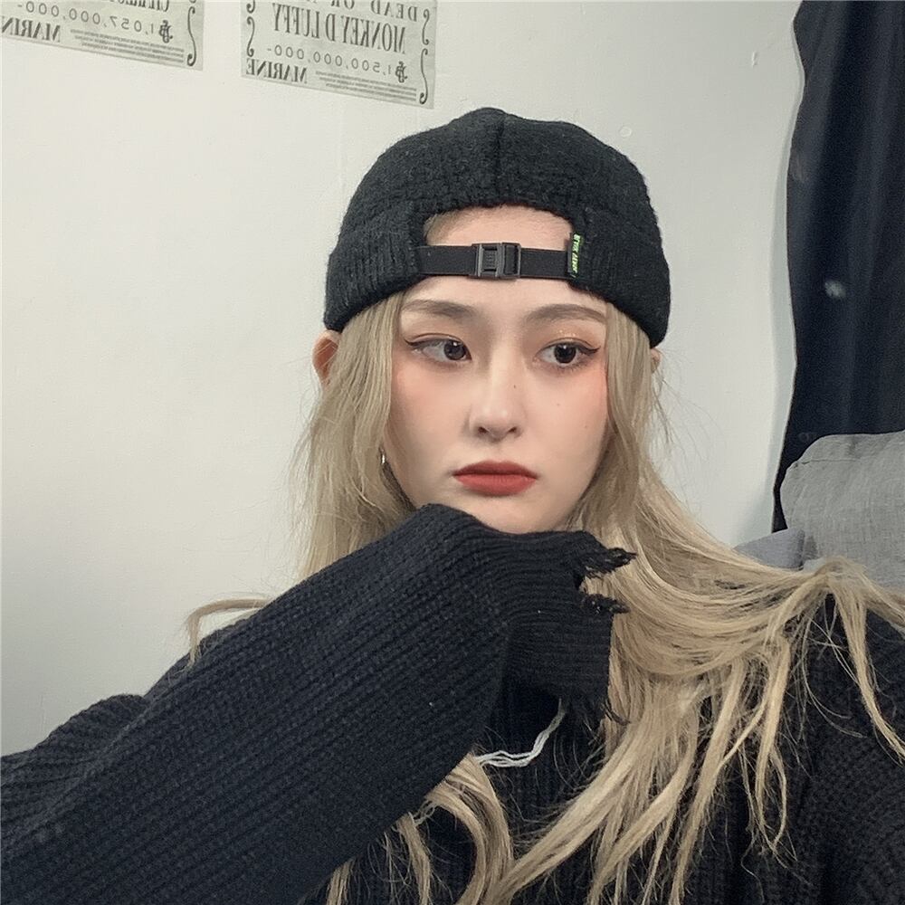 スプリングオータムスタイルカラーニットウールレザーレディース 帽子 かわいい 春物 秋物 ピュア Brother_is_Style33509904361
