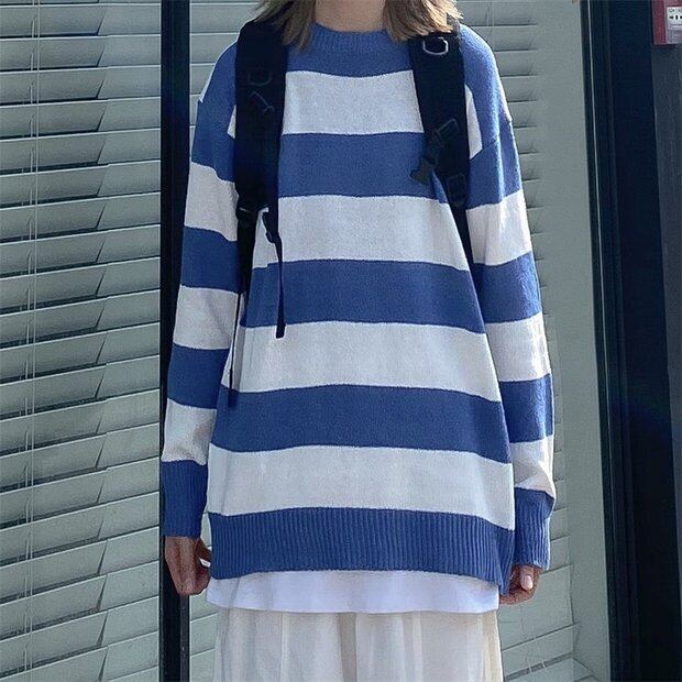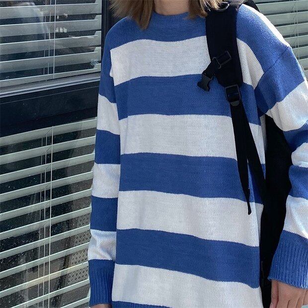 オータムウィンターストライププルオーバー セーター ルーズジャケット 秋物 冬物 Brother_is_Style63518458233