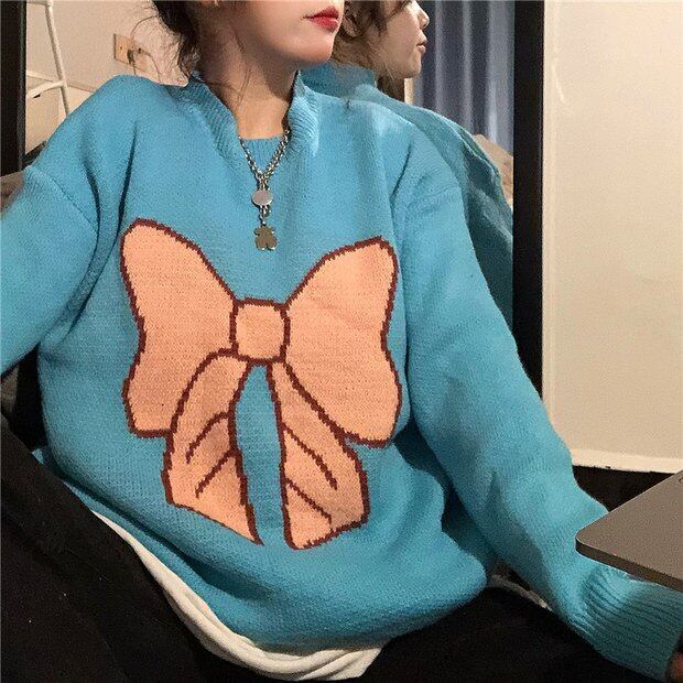 オータムウィンタープルオーバー セーター ルーズジャケット リボン 秋物 冬物 Brother_is_Style16280071372