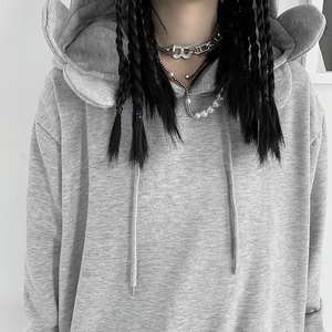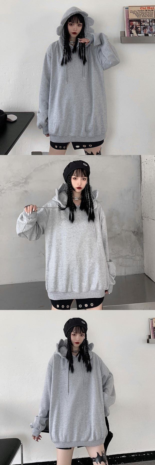 オータムウィンターグレーフードトップス ルーズベルベットセーター ジャケット 秋物 冬物 Brother_is_Style59671620590