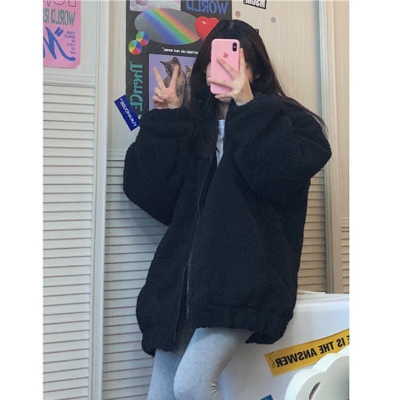 ジャケット ウィンタースタイルブラックルーズウールコート コットン 冬物 Brother_is_Style66018408942