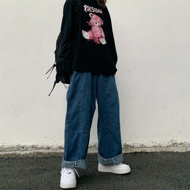 パンツ スプリングオータムスタンダードブルールーズハイウェストジーンズ レトロ 春物 秋物 ステッチ Brother_is_Style78548254712