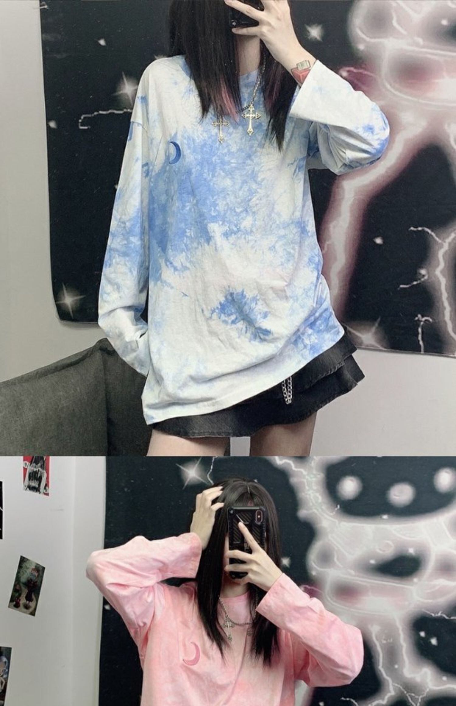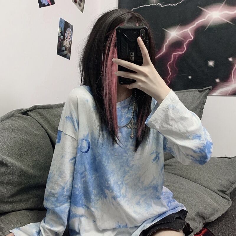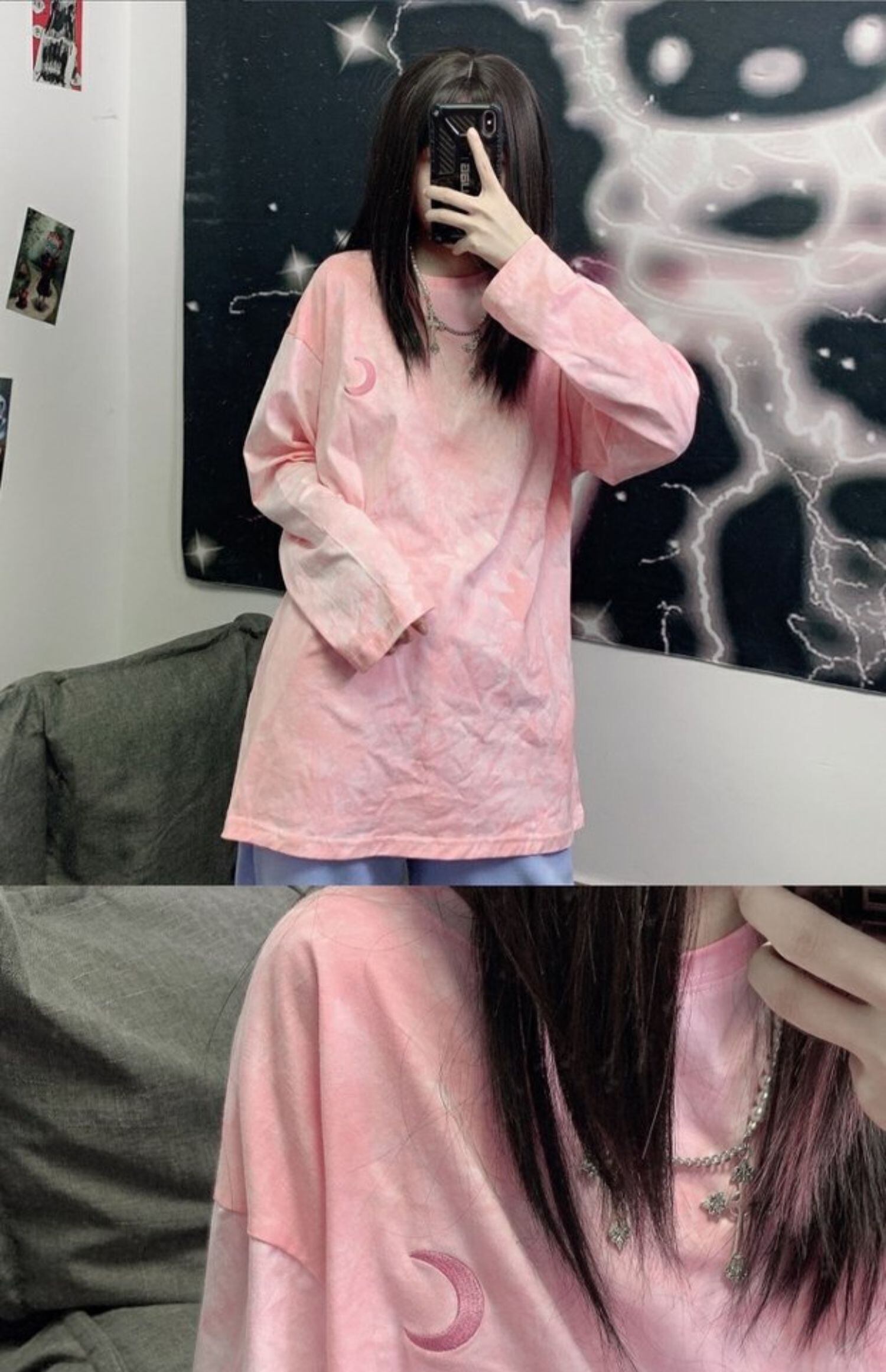 スプリングスタイルTシャツ ルーズトップス ロング レッド 刺繍 かわいい 春物 Brother_is_Style48426426833