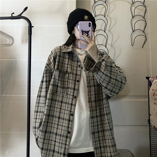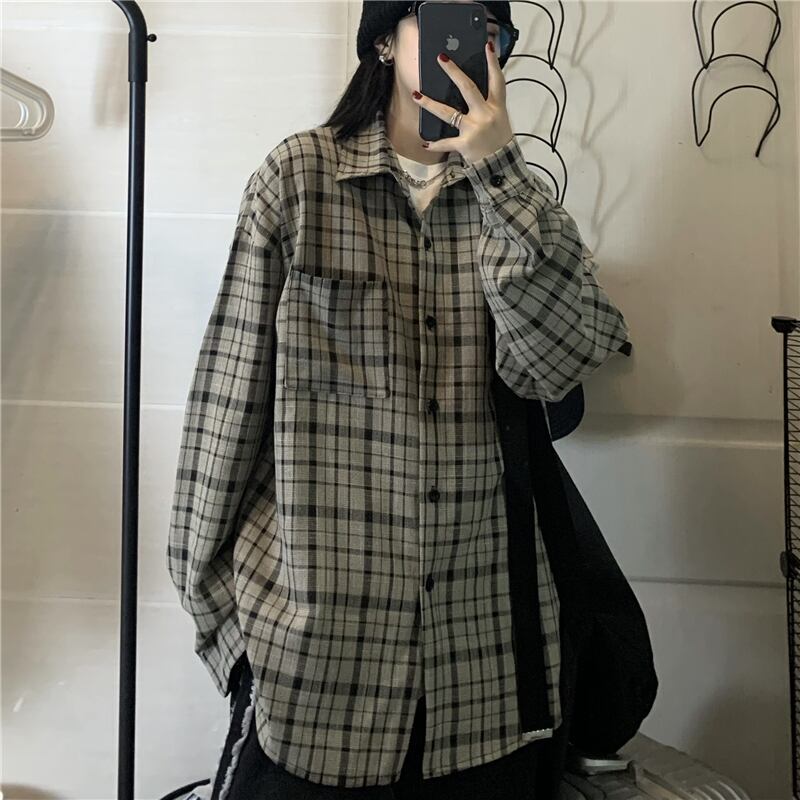 トップス レディーススプリングオータム格子柄シャツ ルーズカジュアルジャケット ロング 春物 秋物 Brother_is_Style97900347287
