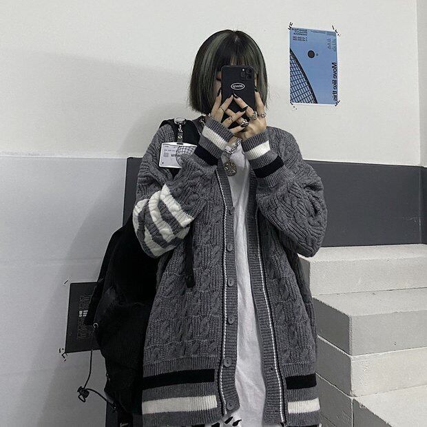 ニットセーター レディースオータムウィンタースタンダードカーディガンジャケット ルーズ レトロ 秋物 冬物 Brother_is_Style36053637615