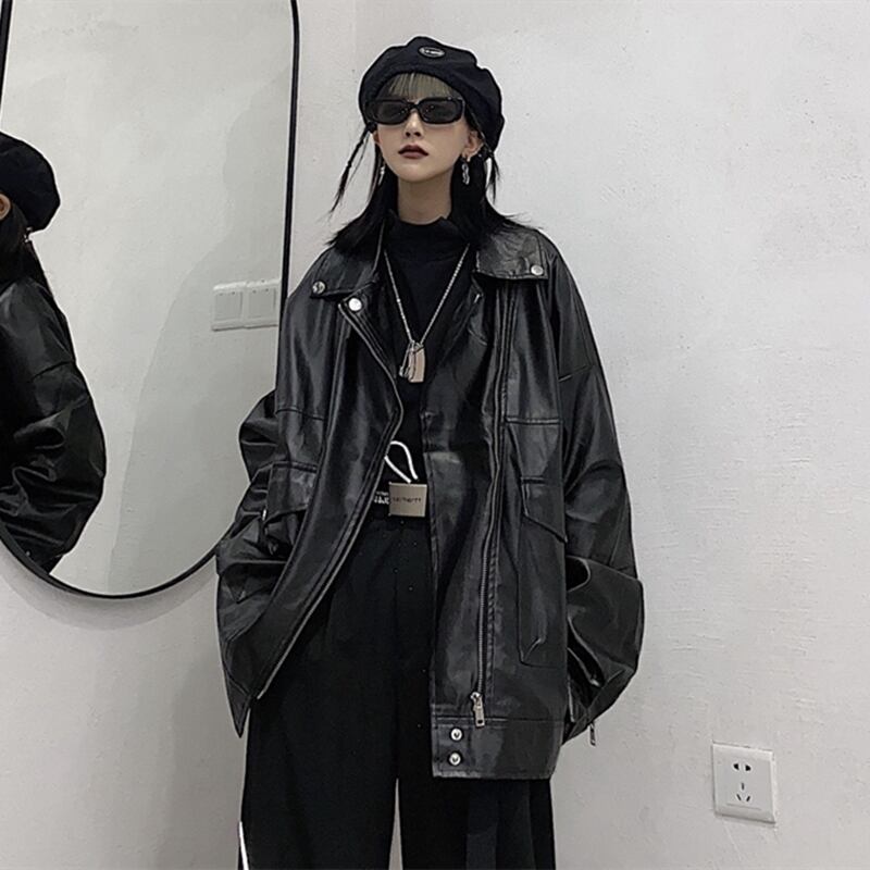 レザースプリングオータムスタンダードブラックジャケット ルーズトップス レトロ 春物 秋物 Brother_is_Style21041813577