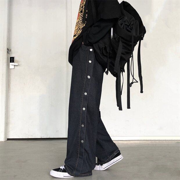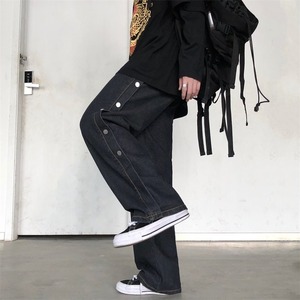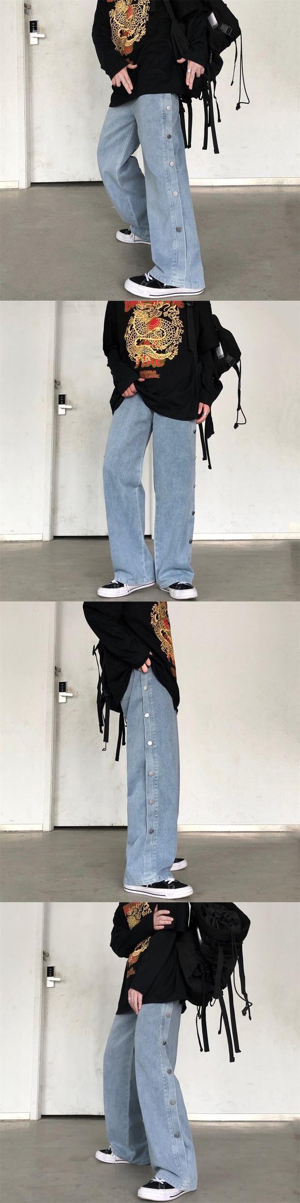 パンツ オータムウィンタースタンダードハイウェストルーズ薄手ジーンズ ブルー レトロ 秋物 冬物 Brother_is_Style20044139697