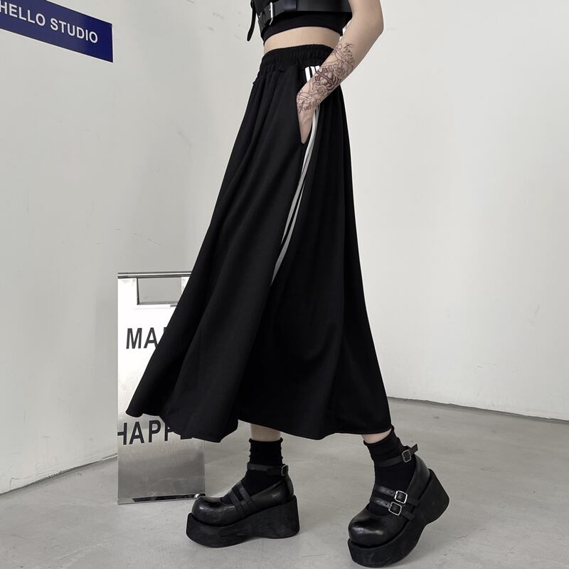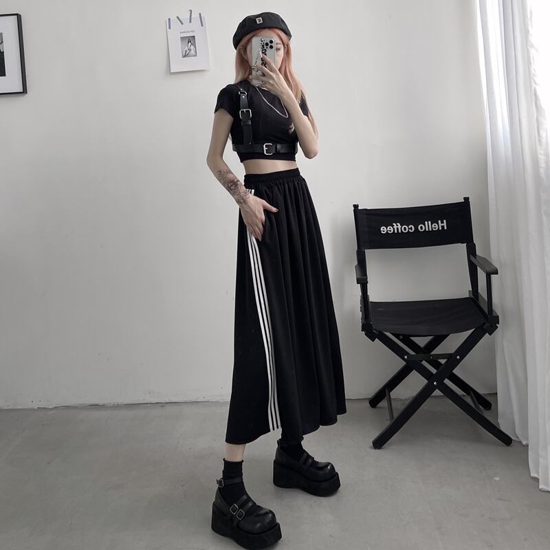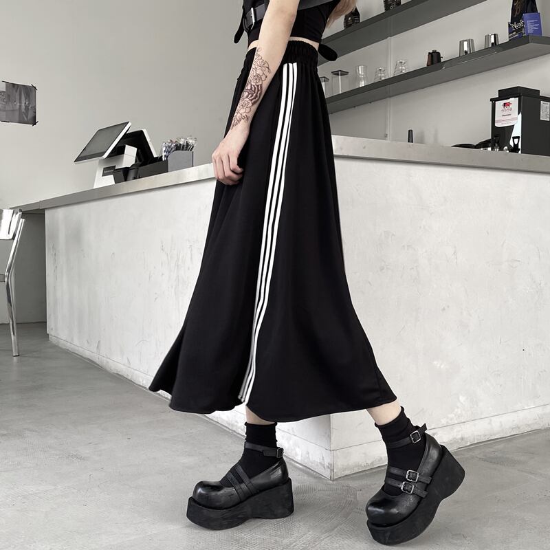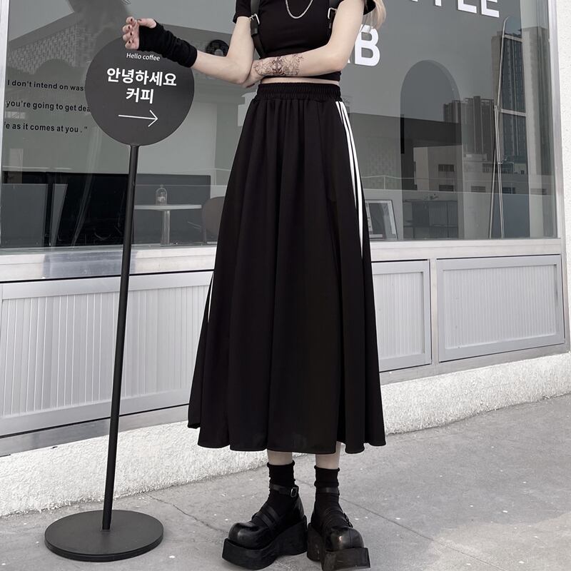 スカート サマーダークスタンダードストライプハイウェストウェストAライン レトロ 夏物 Brother_is_Style56719842978