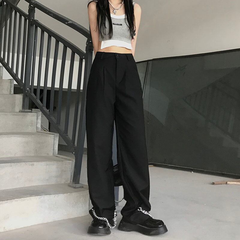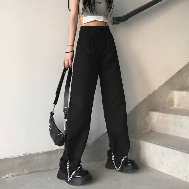 パンツ サマーチェーン ブラックルーズ薄手ハイウェストウェストカジュアル ストリート 夏物 Brother_is_Style12450064838