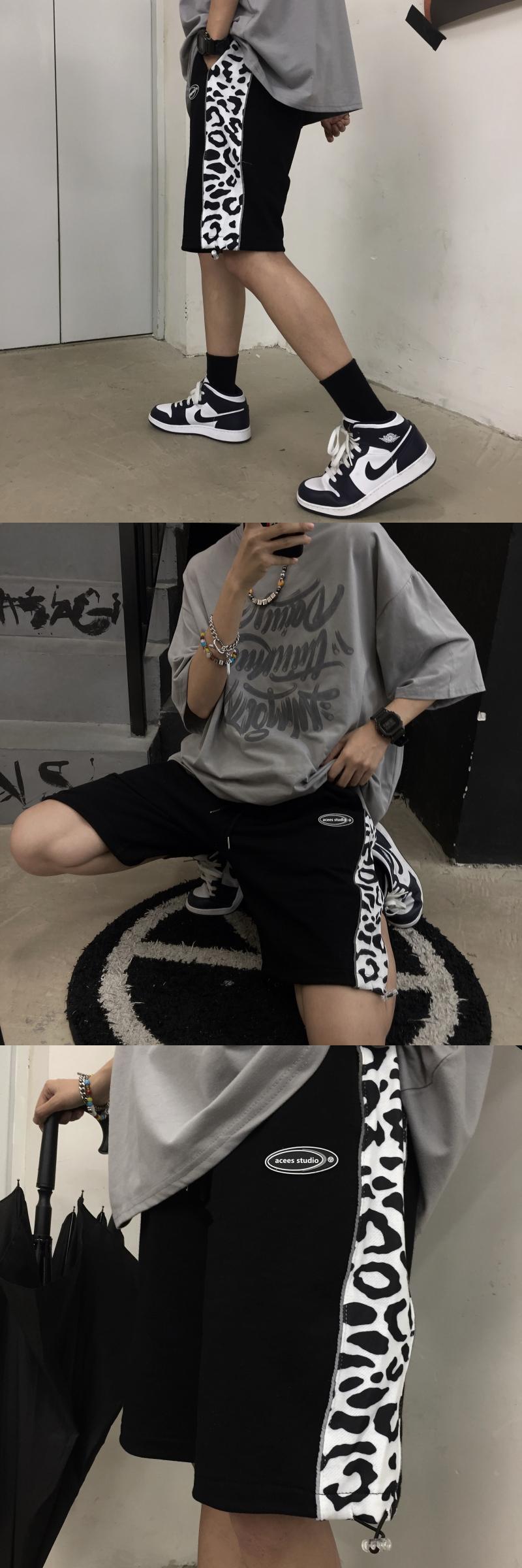 パンツ サマーレオパードプリント柄刺繍ショーツ ルーズブラックカジュアル 夏物 ブルマー Brother_is_Style21502627130