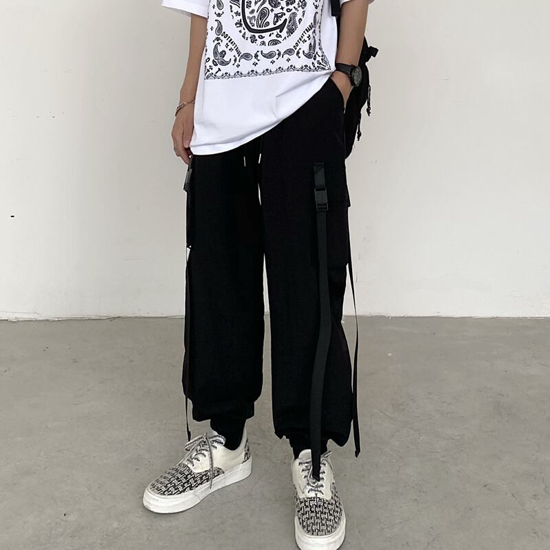 ブラックパンツ サマーオーバーオール ルーズハイウェストウェストカジュアル コルセット ストリート 夏物 Brother_is_Style82587534835