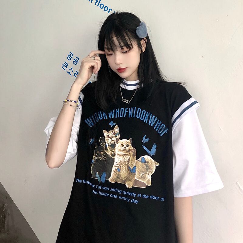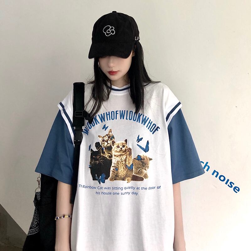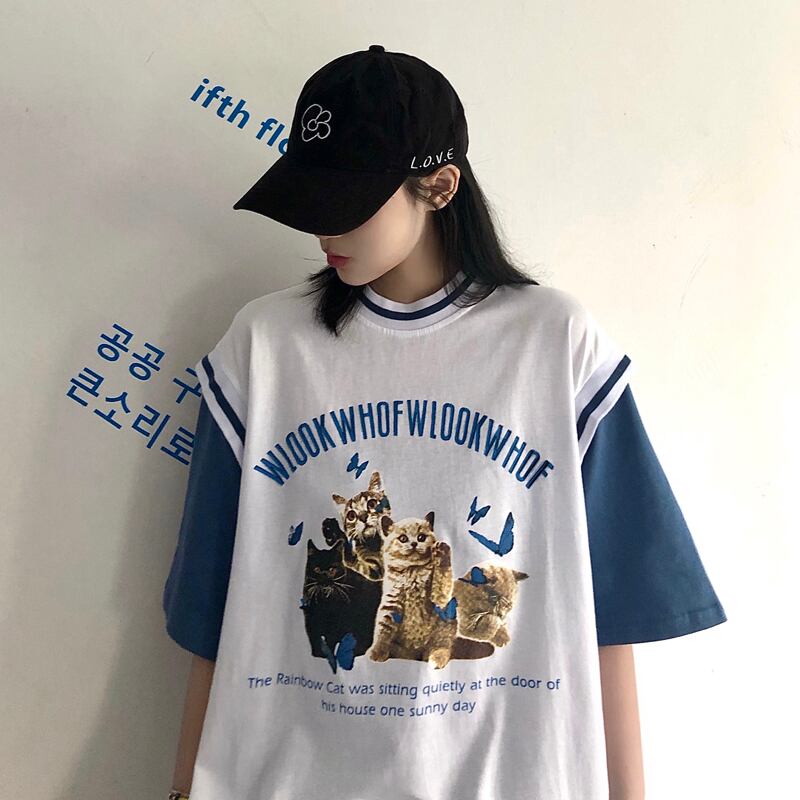 サマースタンダードプリント柄シャツ ルーズTシャツ レトロ 夏物 Brother_is_Style7514980640