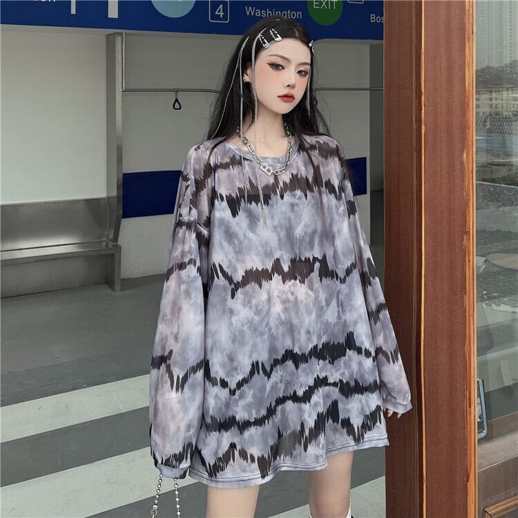 サマーダークメッシュTシャツ ルーズ薄手トップス ロング 夏物 Brother_is_Style21796708669