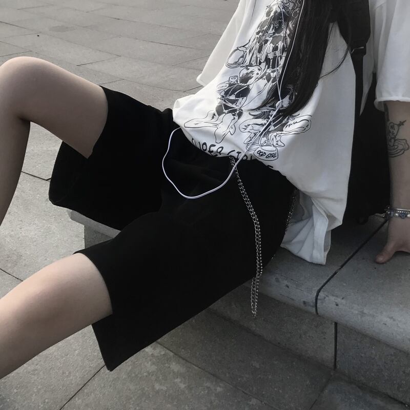 ブラックパンツ サマースタンダードショーツ ルーズハイウェストカジュアル レトロ ストリート 夏物 ブルマー Brother_is_Style78071161224