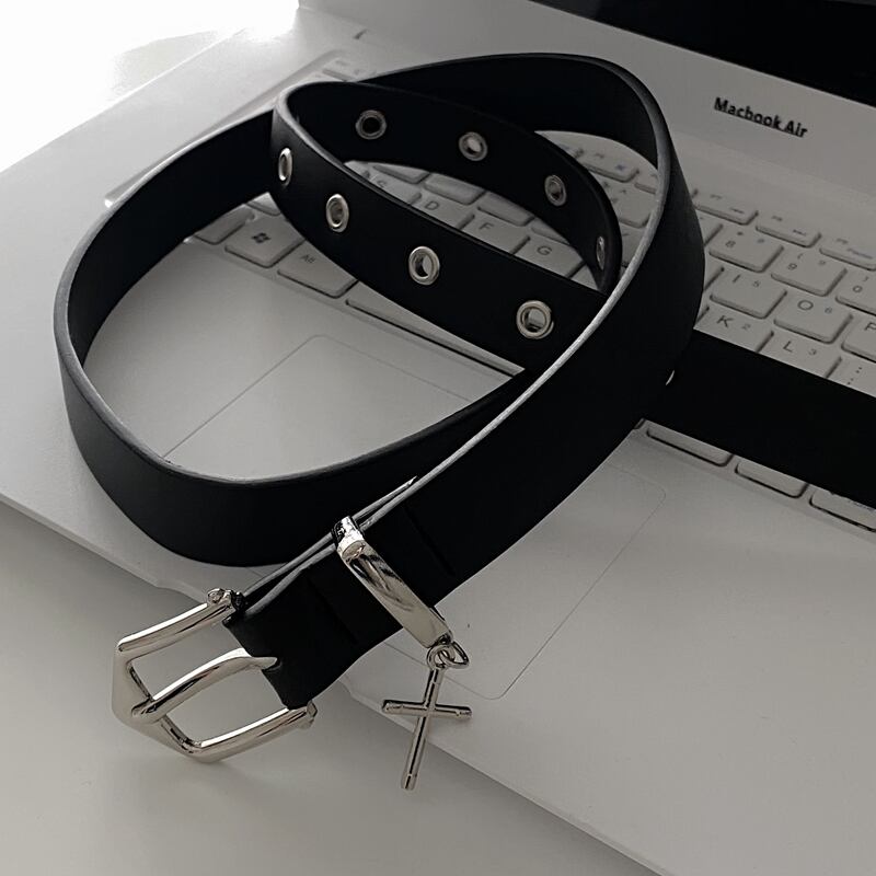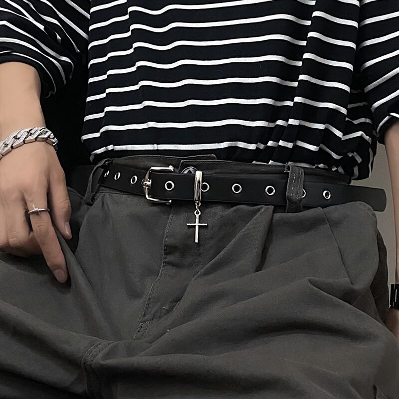 ダークラインバックルベルト ブラックスタンダードカジュアルパンツ レディース レトロ ストリート ハーネス Brother_is_Style17806019348