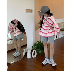 Tシャツ レディースサマースタイルスタンダードストライプ刺繍ルーズトップス レトロ 夏物 Brother_is_Style73108478964