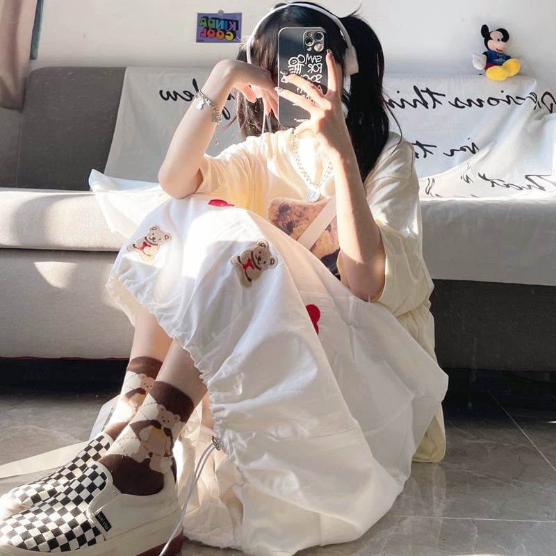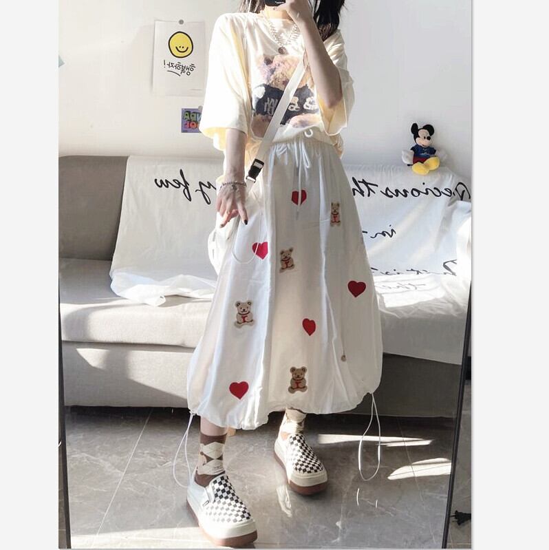 スカート サマー刺繍ホワイトハイウェストウェスト 夏物 Brother_is_Style67482019236