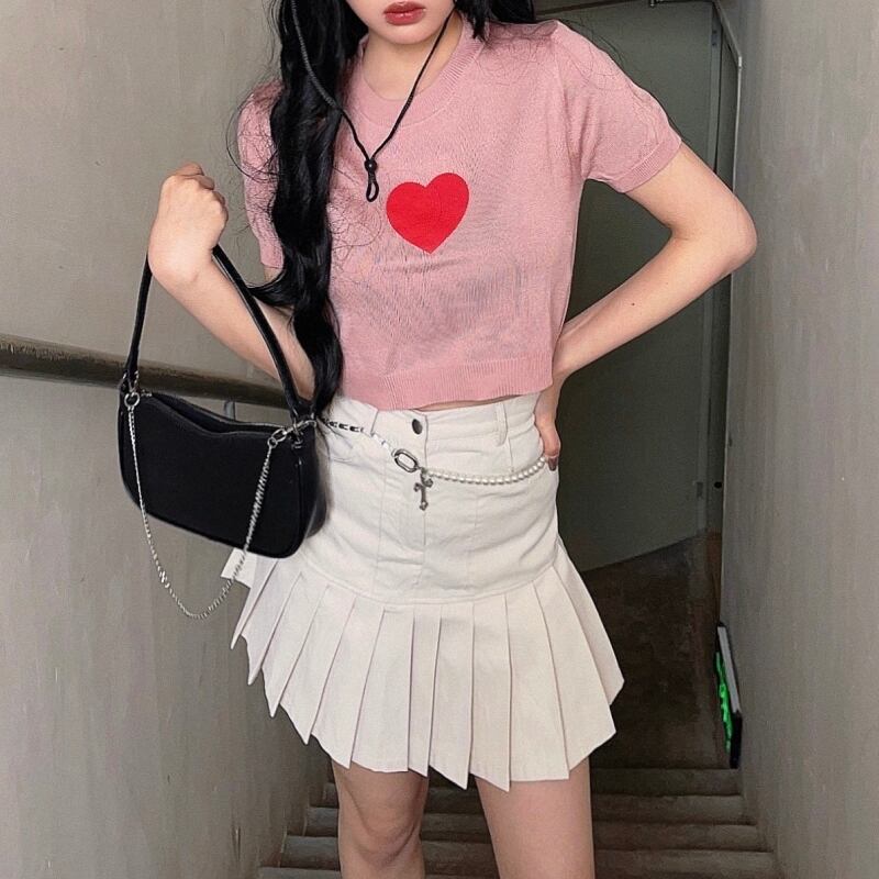 サマースタイルショートTシャツ スリムニットセーター トップス レディース かわいい 夏物 Brother_is_Style59143703963