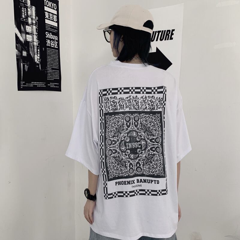 サマースタンダードホワイトFlowerデザイン トップス ルーズTシャツ レトロ 夏物 フラワーデザイン Brother_is_Style67067546160