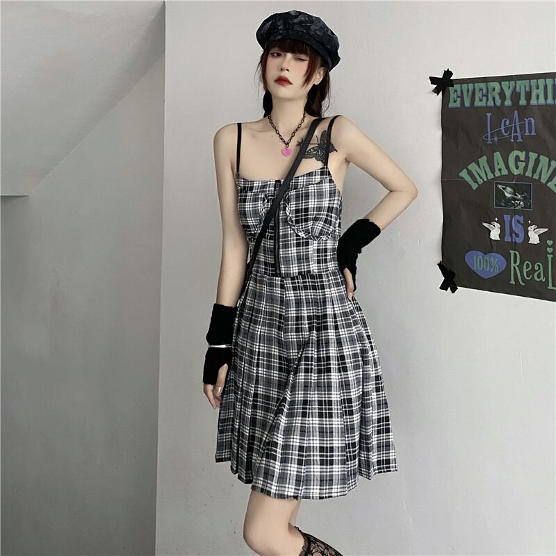 スカート サマースタンダード格子柄ドレス ウェスト薄手Aライン レトロ 夏物 Brother_is_Style59847288130
