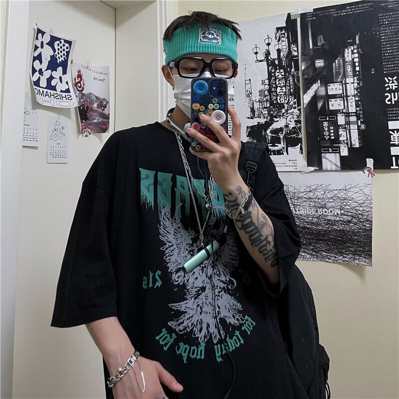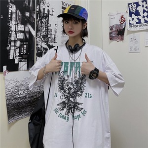 サマースタイルダークプリントTシャツ ルーズトップス かわいい 夏物 Brother_is_Style59209816780