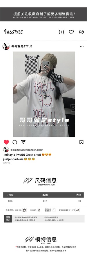 サマースタイルダブルプリントTシャツ ルーズトップス かわいい 夏物 Brother_is_Style42903224012