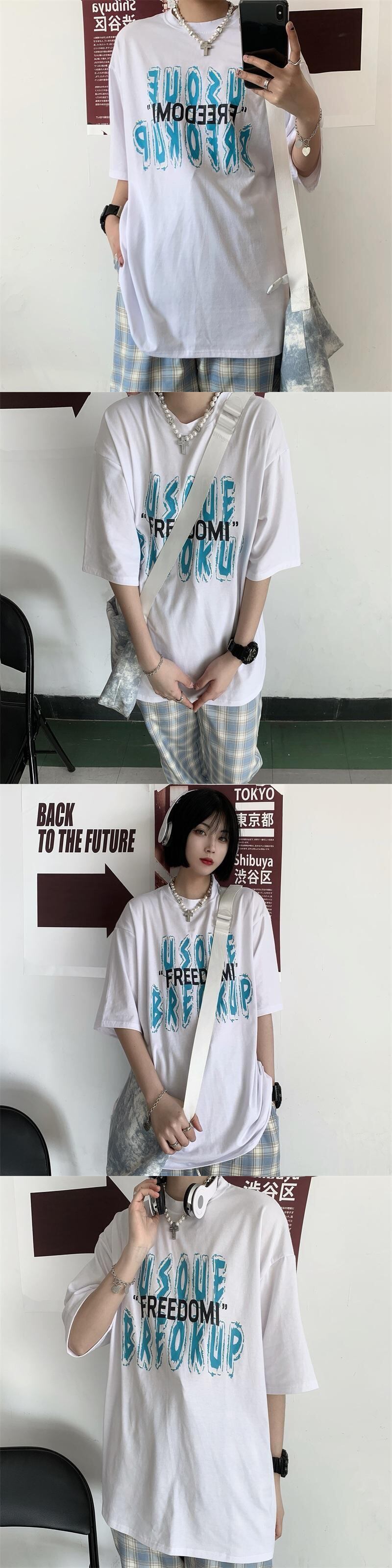 サマーダークプリントTシャツ ルーズトップス 夏物 Brother_is_Style38511198318