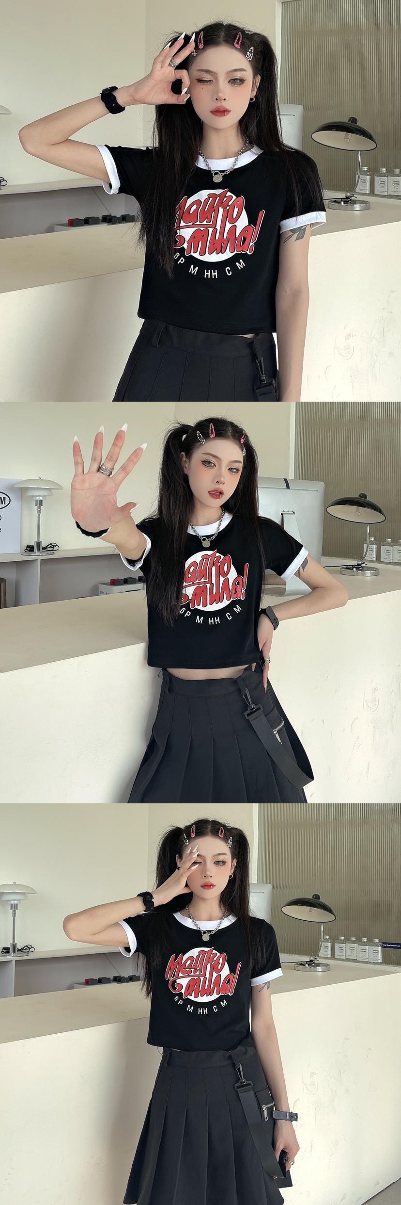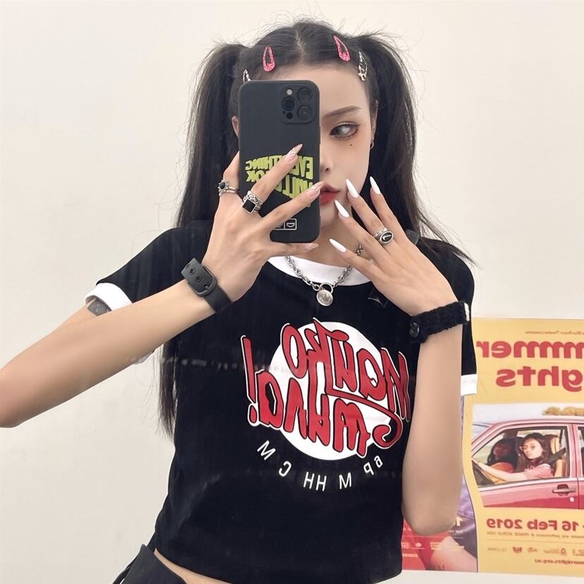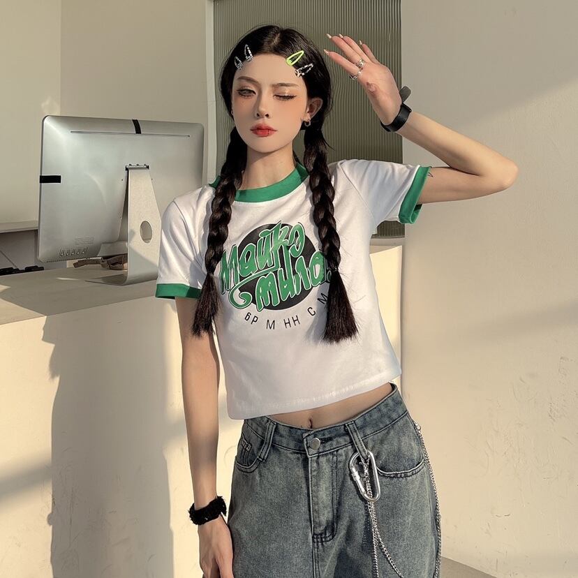 ショートサマースタイルカラーTシャツ スリムクロップドトップス かわいい 夏物 Brother_is_Style45408115527