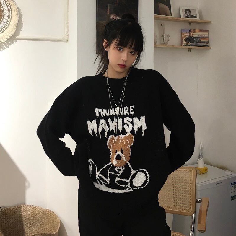 オータムウィンタースタイルブラックニットセーター コート ルーズプルオーバー レディース 秋物 冬物 Brother_is_Style52973042719
