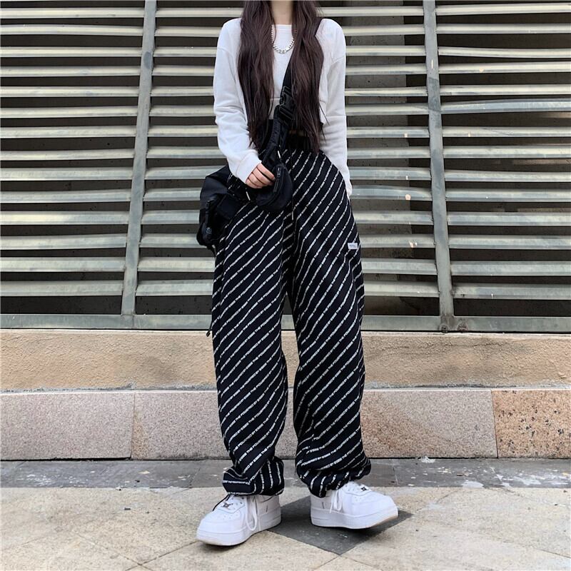 パンツ オータムウィンターブラックカジュアルルーズベルベット ストリート 秋物 冬物 Brother_is_Style94105352648